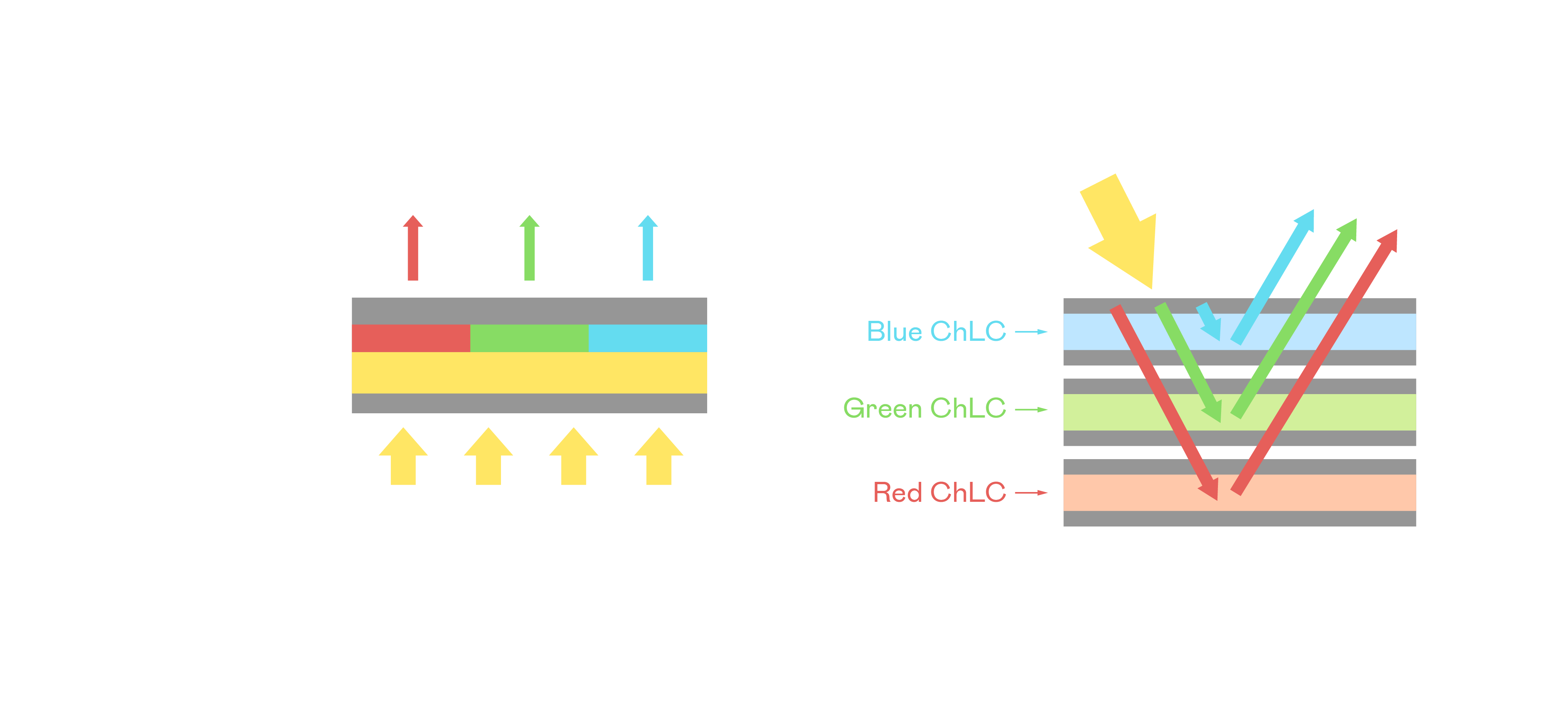 70net永乐高胆固醇液晶显示器是由红、绿、蓝三层胆固醇液晶面板堆叠而成,并采用无彩色滤光片设计,减少环境光在反射过程中的损耗。